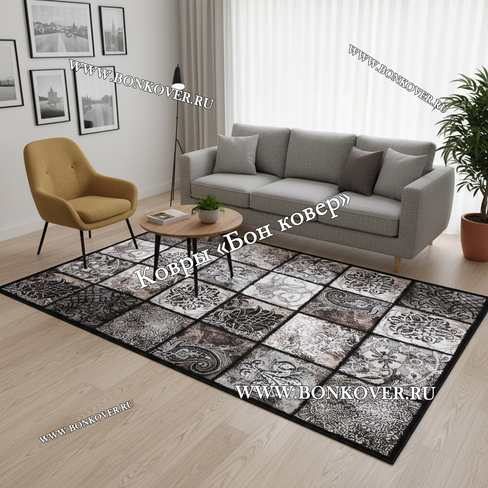 Ковер Для Гостиной Дизайн 02 Серый Прямоугольный