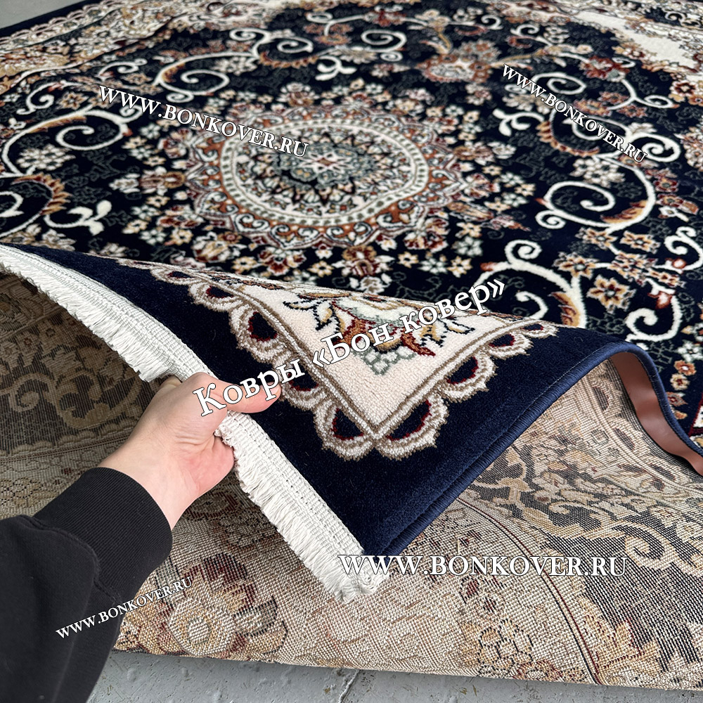 Шикарный Ковер Для Гостиной Медальон Дизайн 8789 Синий наполняет интерьер жилого пространства теплом и уютом, гармонично сочетает в себе изящество и красоту. Он соткан из экологически чистого сырья, комфортный и долговечный.