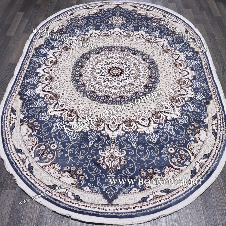 Турецкий Ковер для гостиной дизайн 017 Синий Овал станет блестящим дополнением интерьера, оформленного в современном или классическом стиле. Мягкое, но прочное, ковровое изделие обеспечивает тепло- и шумоизоляцию, отличается длительным периодом эксплуатации, надежностью, экологичностью и высокой износостойкостью, является отличной защитой от повышенной влажности в комнате и утеплителем для холодного пола. Благодаря качеству материалов, ковер не деформируется, сохраняет форму под тяжестью предметов мебели. За его поверхностью легко ухаживать.